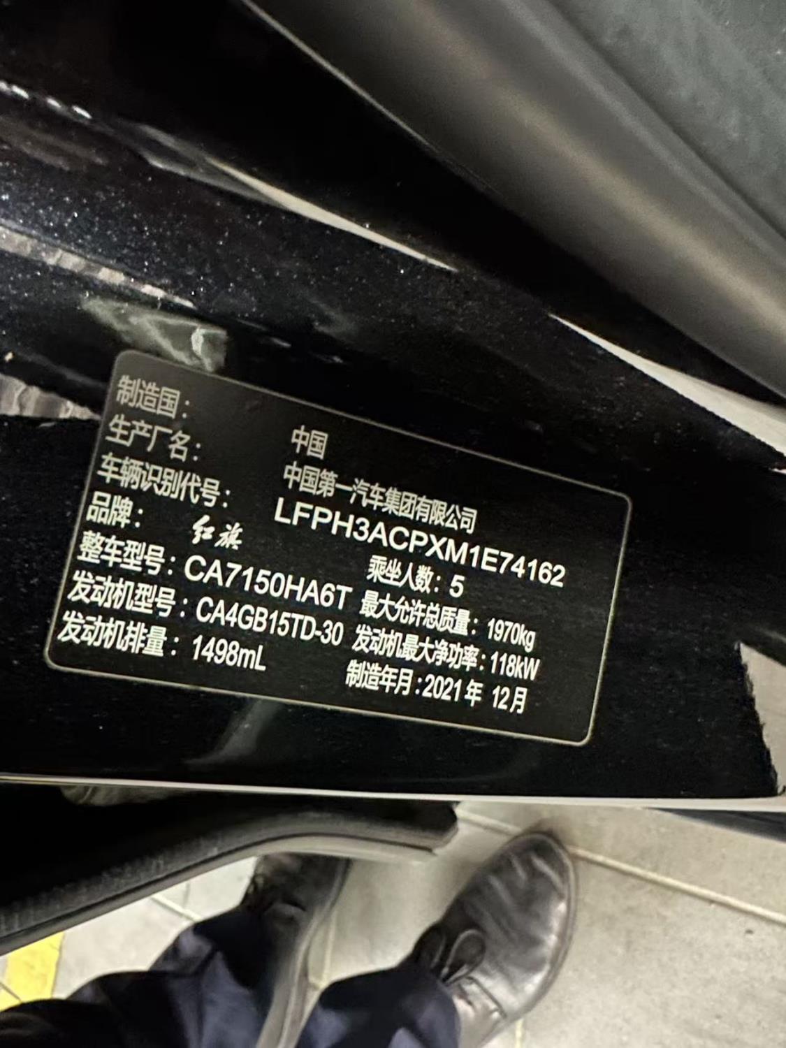 初次登记日期 2021-12-22 车辆名称 红旗H5