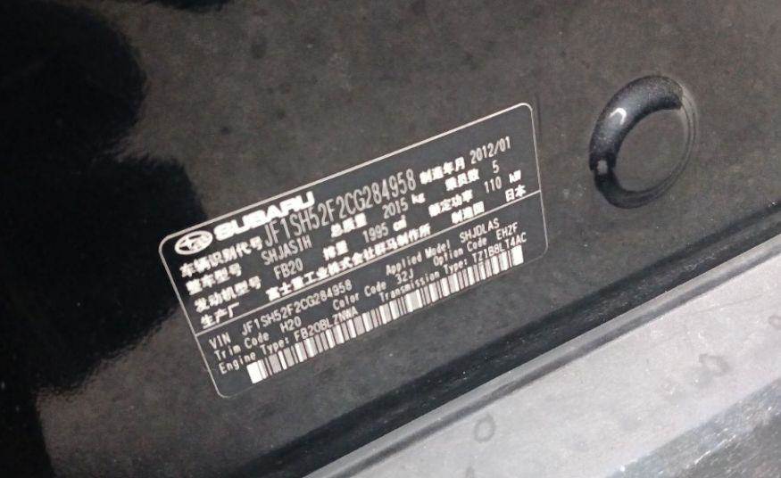 底盘号码 JF1SH52F2CG284958 变速箱类型 手自一体