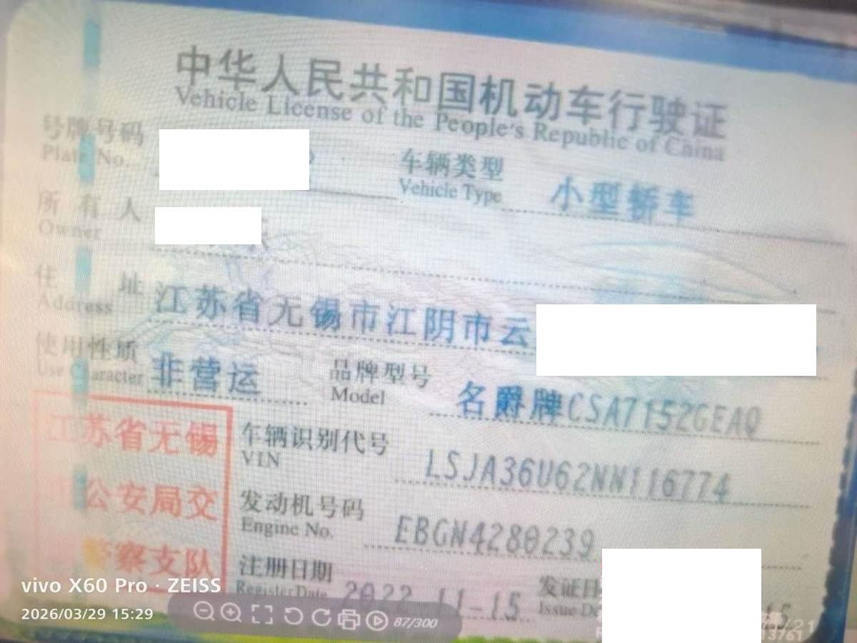车牌号 苏****** 品牌 名爵
