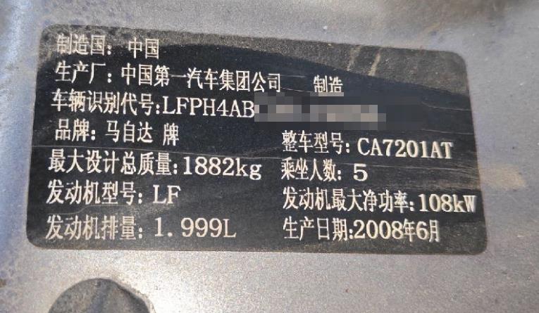 初次登记日期 2008-08-05 车辆名称 马自达6