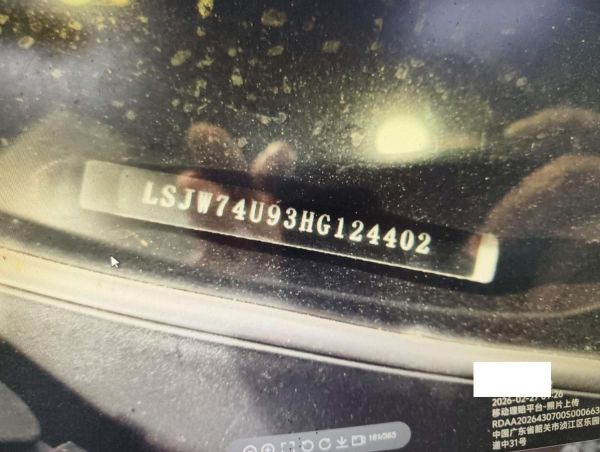 底盘号码 LSJW74U93HG124402 变速箱类型 自动
