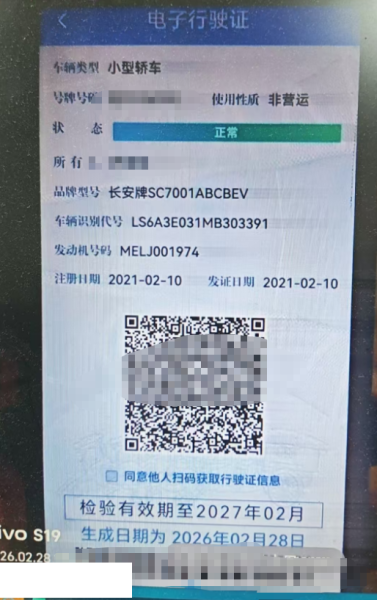 初次登记日期 2021-02-10 车辆名称 长安奔奔