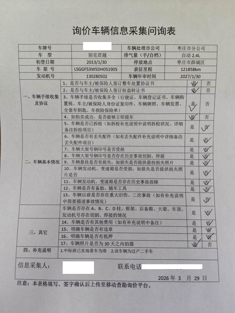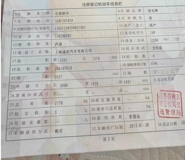 初次登记日期 2013-01-30 车辆名称 别克 君越