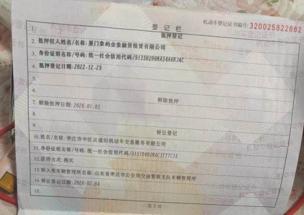 车辆归属地 山东省枣庄市 车辆停放仓库 山东省枣庄市