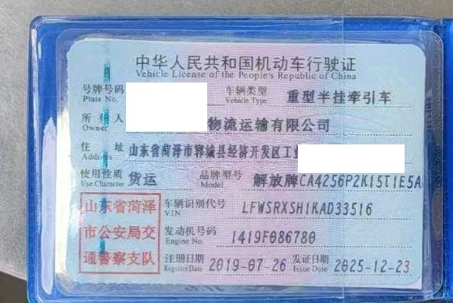 车牌号 鲁****** 品牌 解放