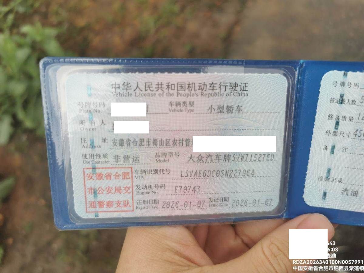 初次登记日期 2026-01-07 车辆名称 大众 朗逸