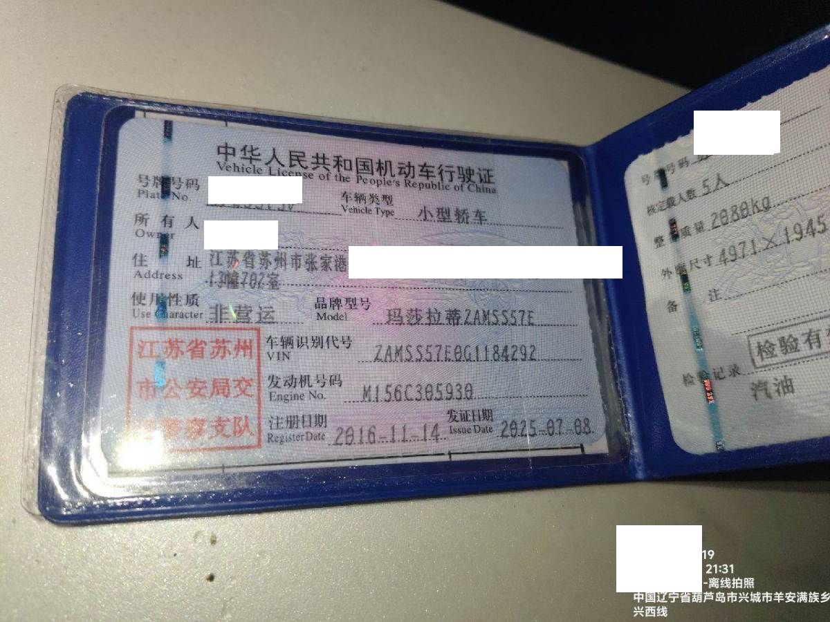 车牌号 苏****** 品牌 玛莎拉蒂