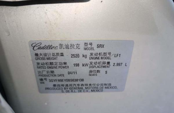 初次登记日期 2011-09-06 车辆名称 凯迪拉克SRX