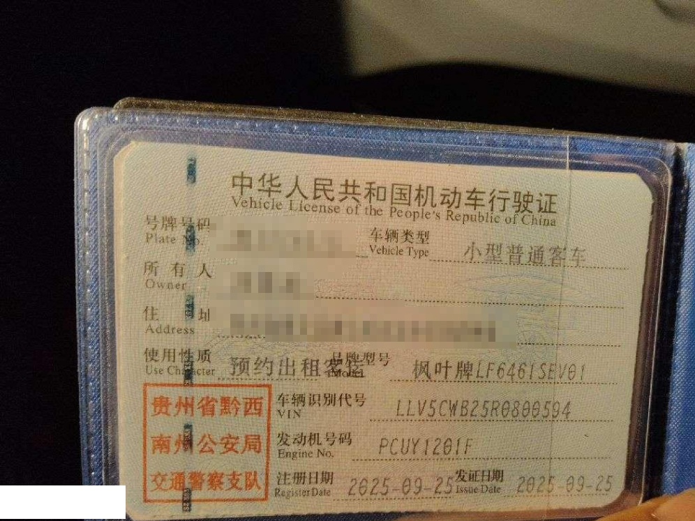 初次登记日期 2025-09-25 车辆名称 睿蓝汽车 睿蓝