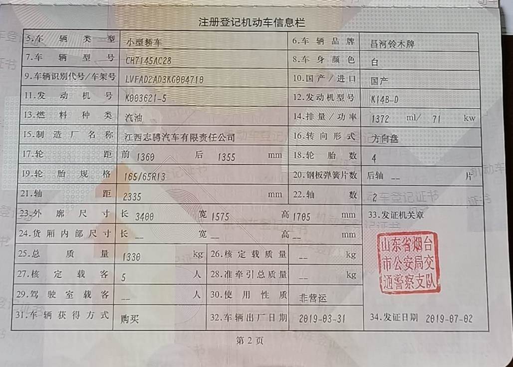 初次登记日期 2019-07-02 车辆名称 铃木 北斗星