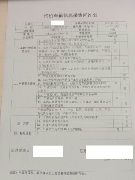车架号是否受损 未知 使用性质 非营运