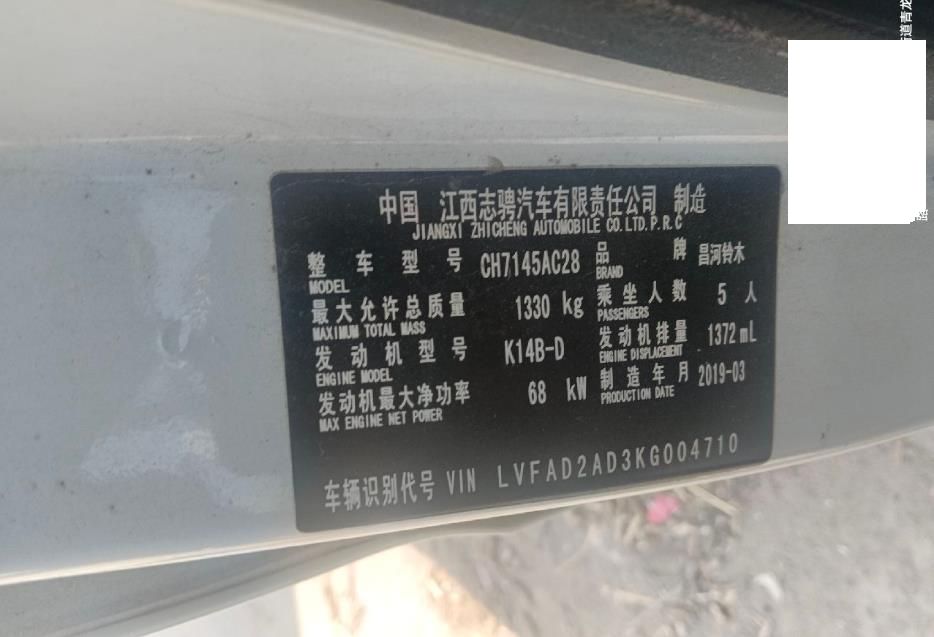 底盘号码 LVFAD2AD3KG004710 变速箱类型 手动
