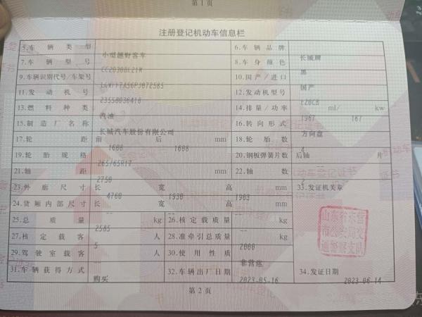 车牌号 鲁****** 品牌 长城