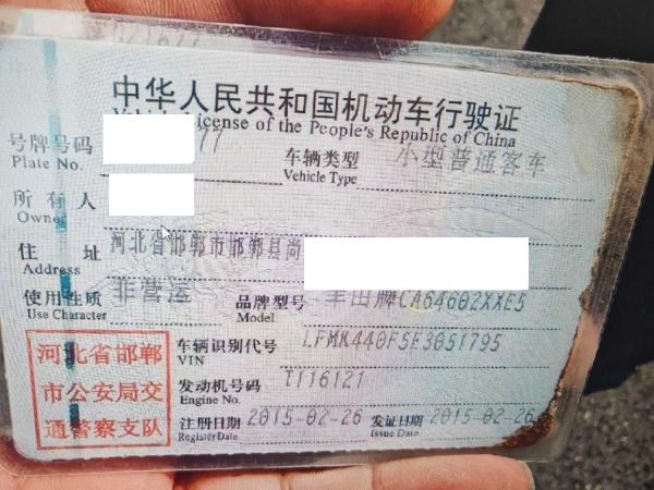 车辆归属地 河北省邯郸市 车辆停放仓库 河北省邯郸市邯郸市