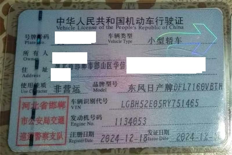 车辆归属地 河北省邯郸市 车辆停放仓库 河北省邯郸市邯郸市