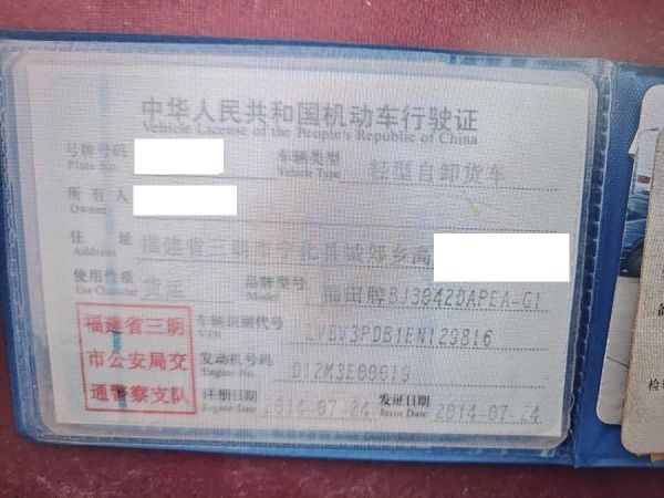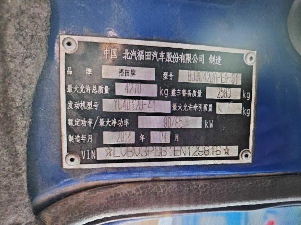 初次登记日期 2014-07-24 车辆名称 福田牌