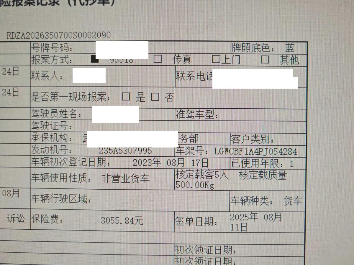 初次登记日期 2023-08-17 车辆名称 长城牌