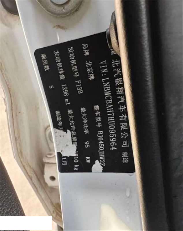 底盘号码 LNBMCBAH7HU095964 变速箱类型 手动