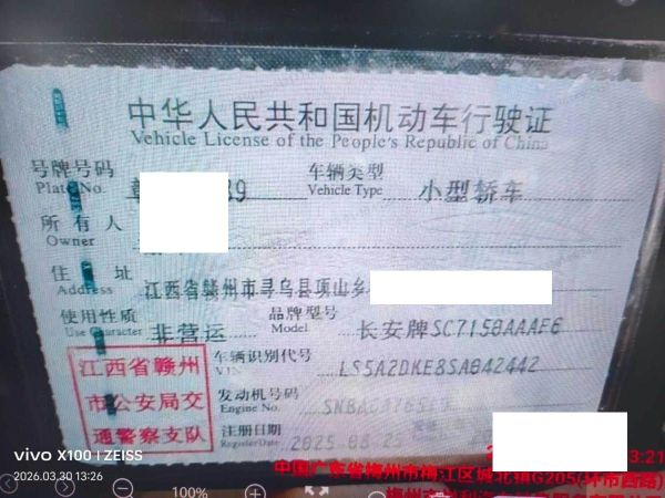 车辆归属地 江西省赣州市 车辆停放仓库 广东省梅州市梅州市