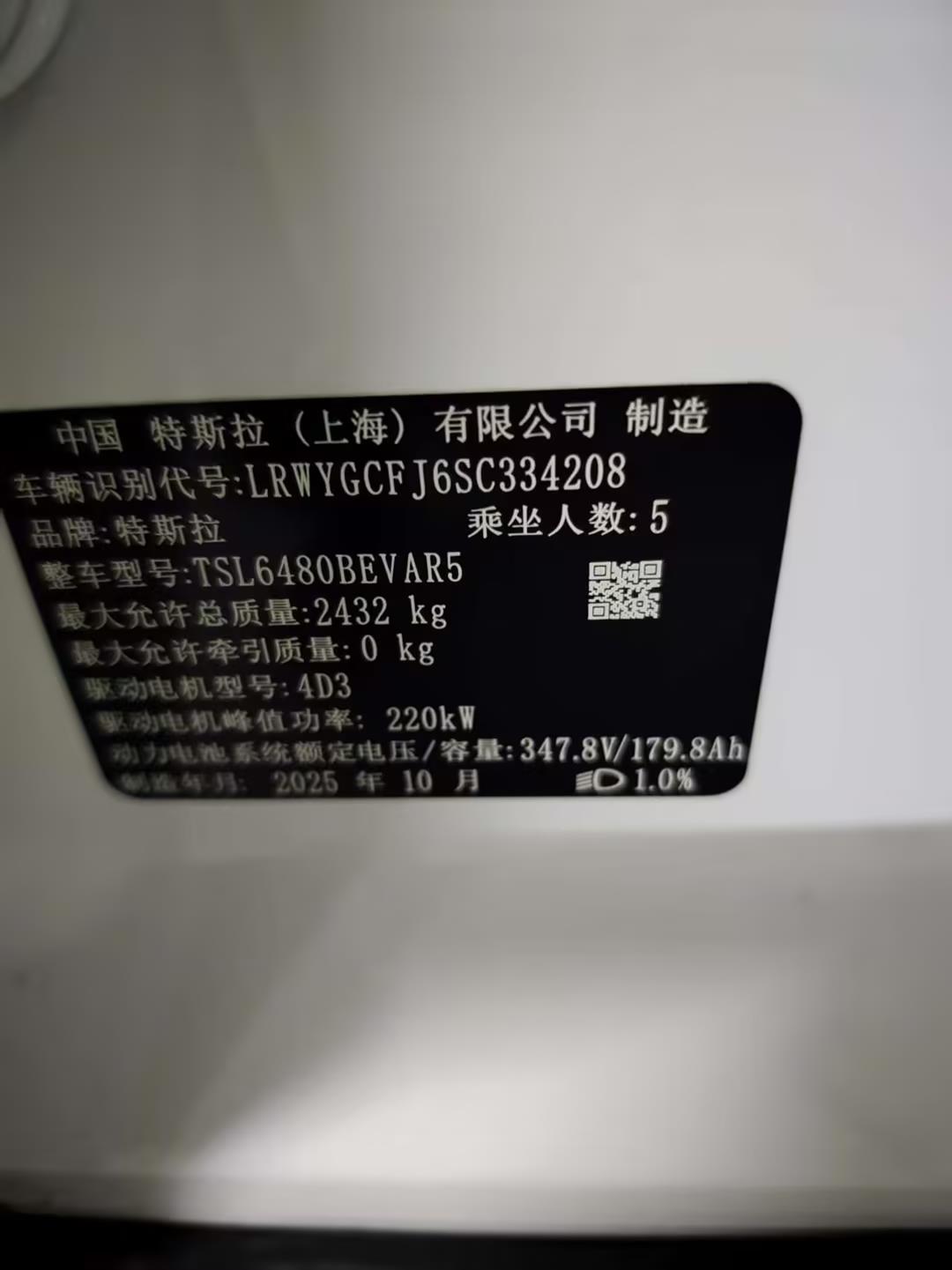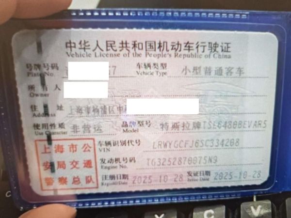 初次登记日期 2025-10-28 车辆名称 特斯拉 Model
