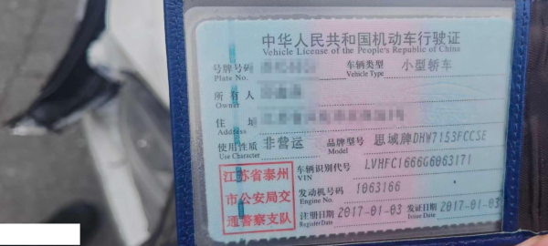 车辆归属地 江苏省泰州市 车辆停放仓库 上海