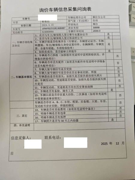 车架号是否受损 未知 使用性质 非营运