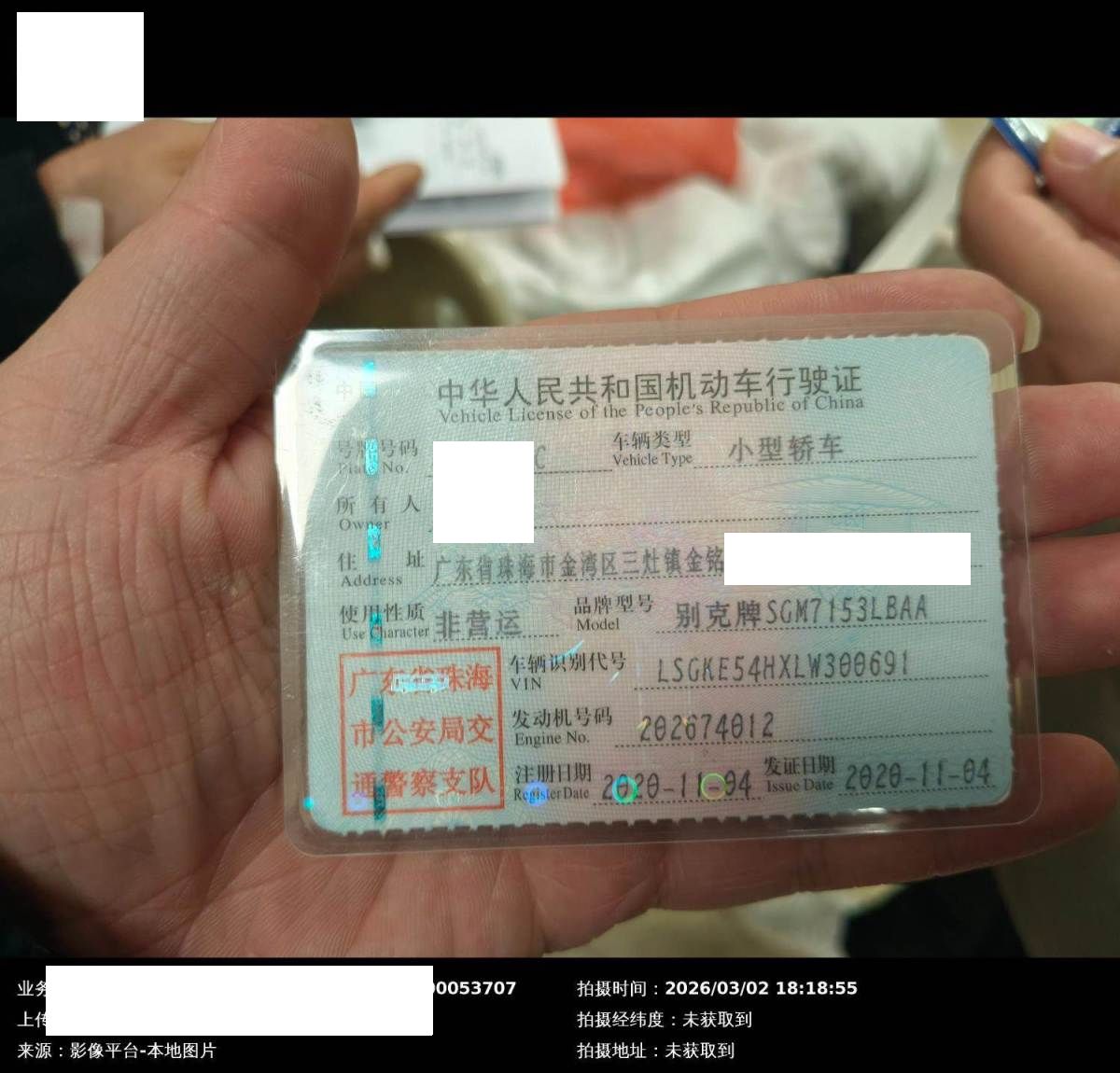 车辆归属地 广东省珠海市 车辆停放仓库 湖南省长沙市开福区