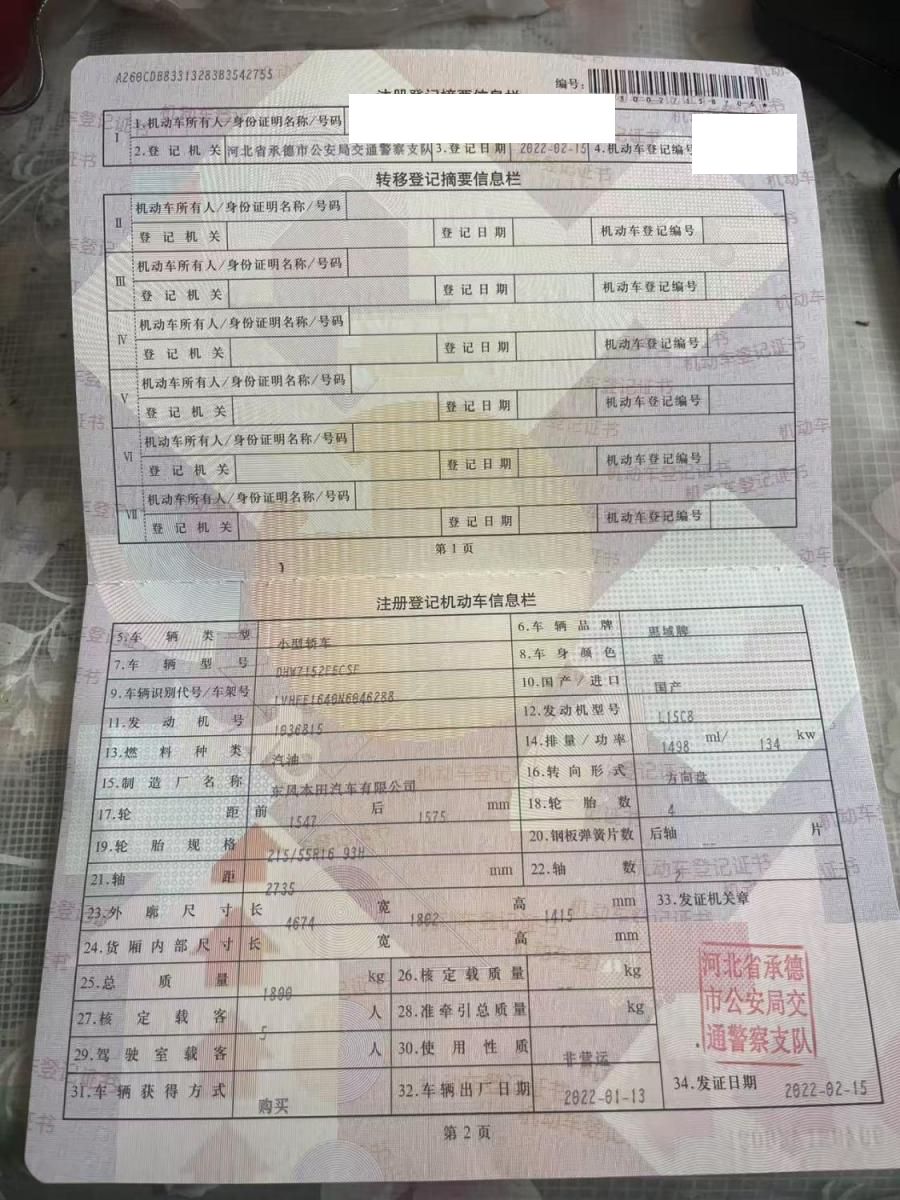初次登记日期 2022-02-15 车辆名称 本田 思域
