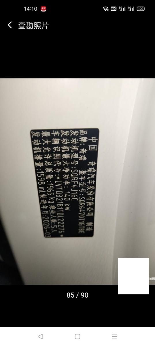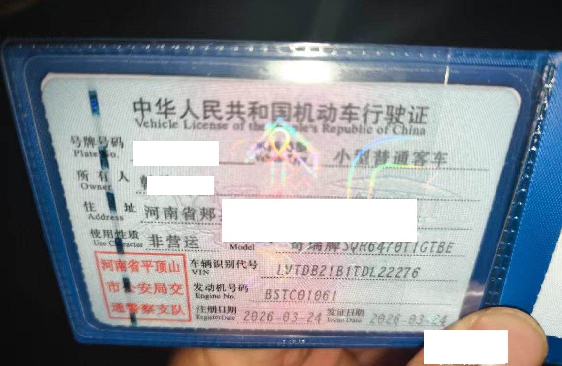 初次登记日期 2026-03-23 车辆名称 奇瑞 瑞虎