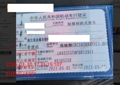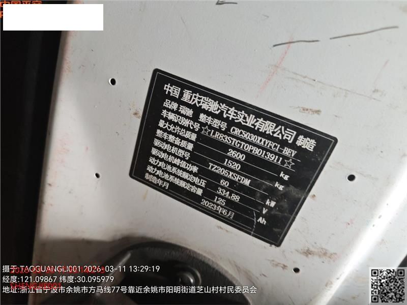 初次登记日期 2023-09-05 车辆名称 瑞驰汽车