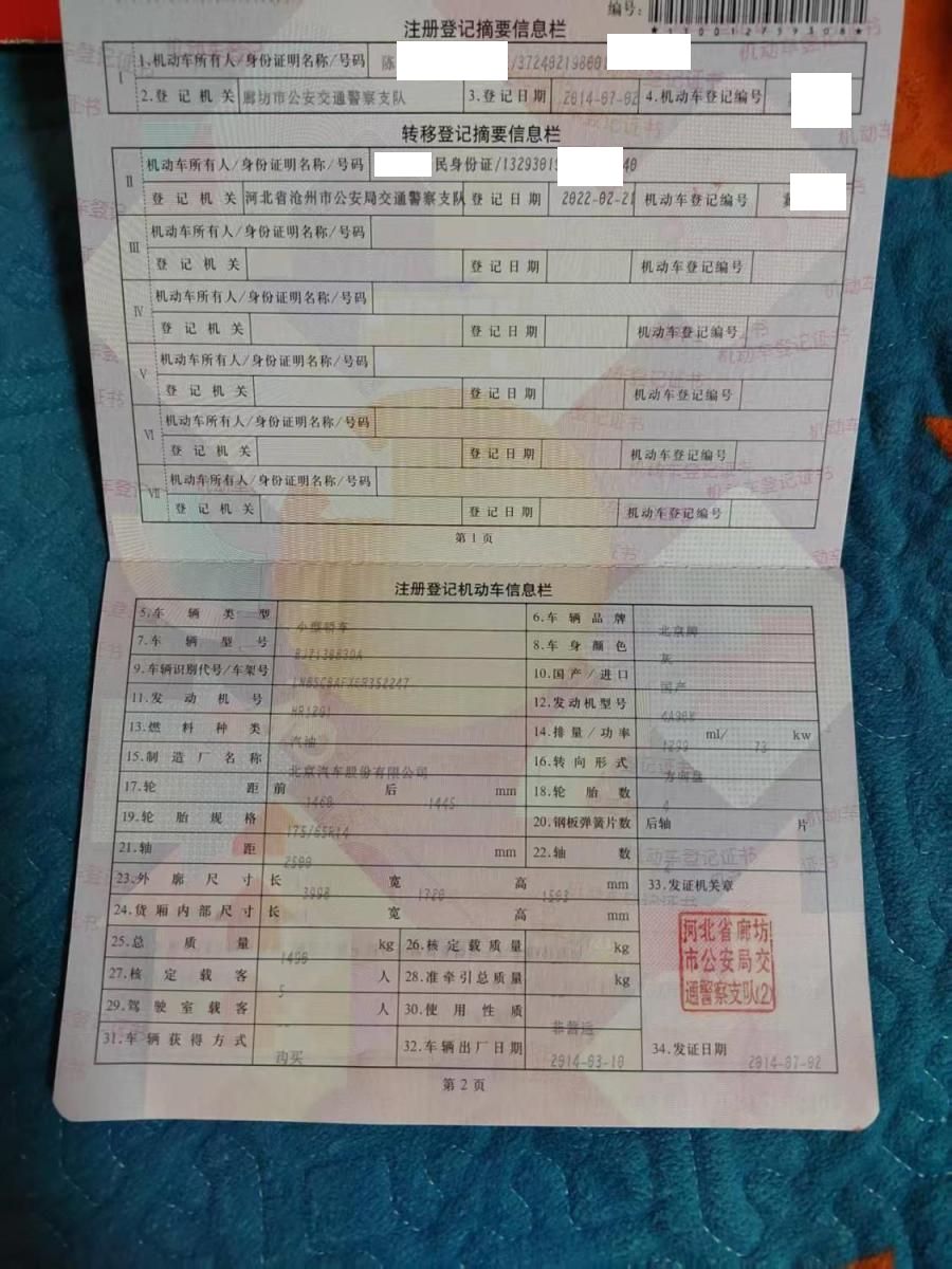 初次登记日期 2014-07-02 车辆名称 北京汽车