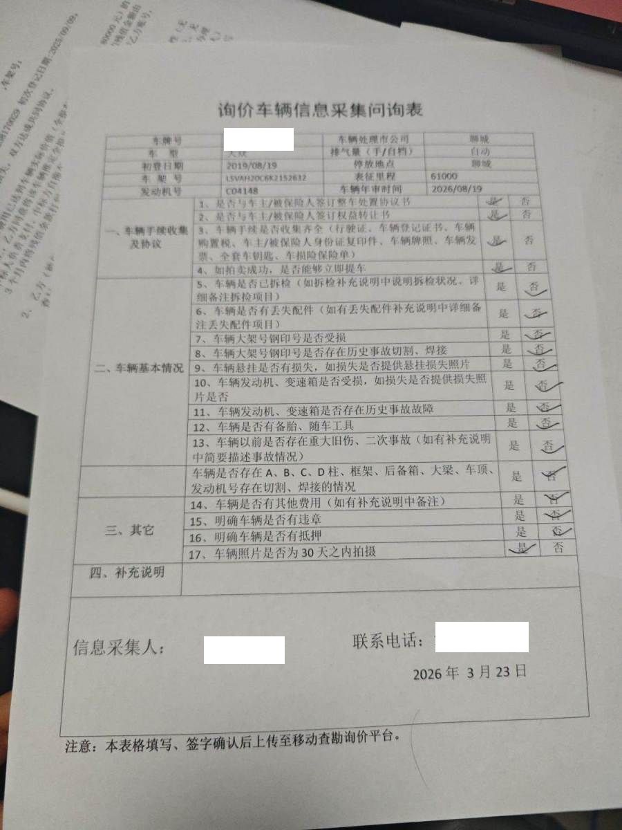 车架号是否受损 使用性质 非营运