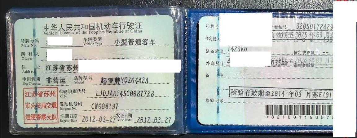 车辆归属地 江苏省苏州市 车辆停放仓库 江苏省苏州市苏州市