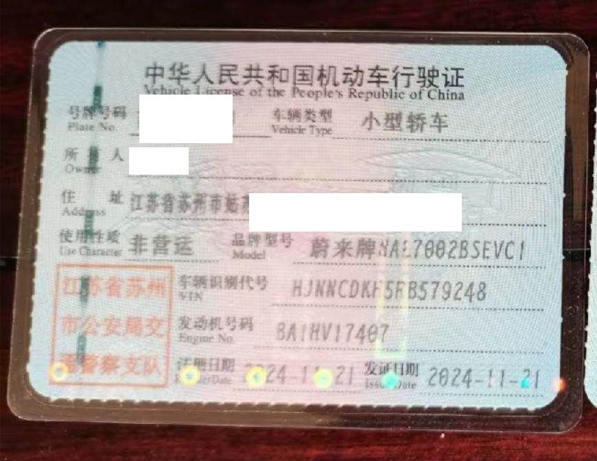 初次登记日期 2024-11-21 车辆名称 蔚来牌