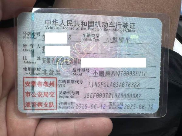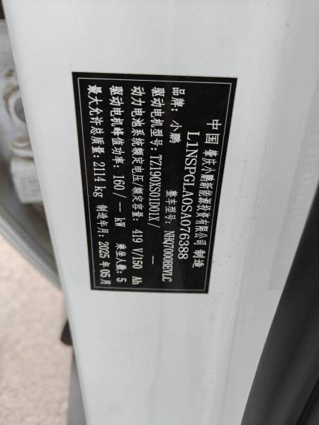 初次登记日期 2025-06-12 车辆名称 小鹏牌