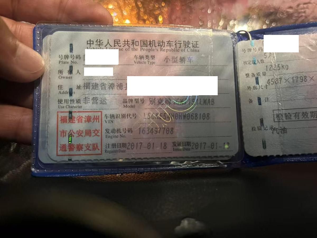 初次登记日期 2017-01-18 车辆名称 别克 英朗