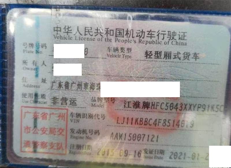 车牌号 粤****** 品牌 江淮