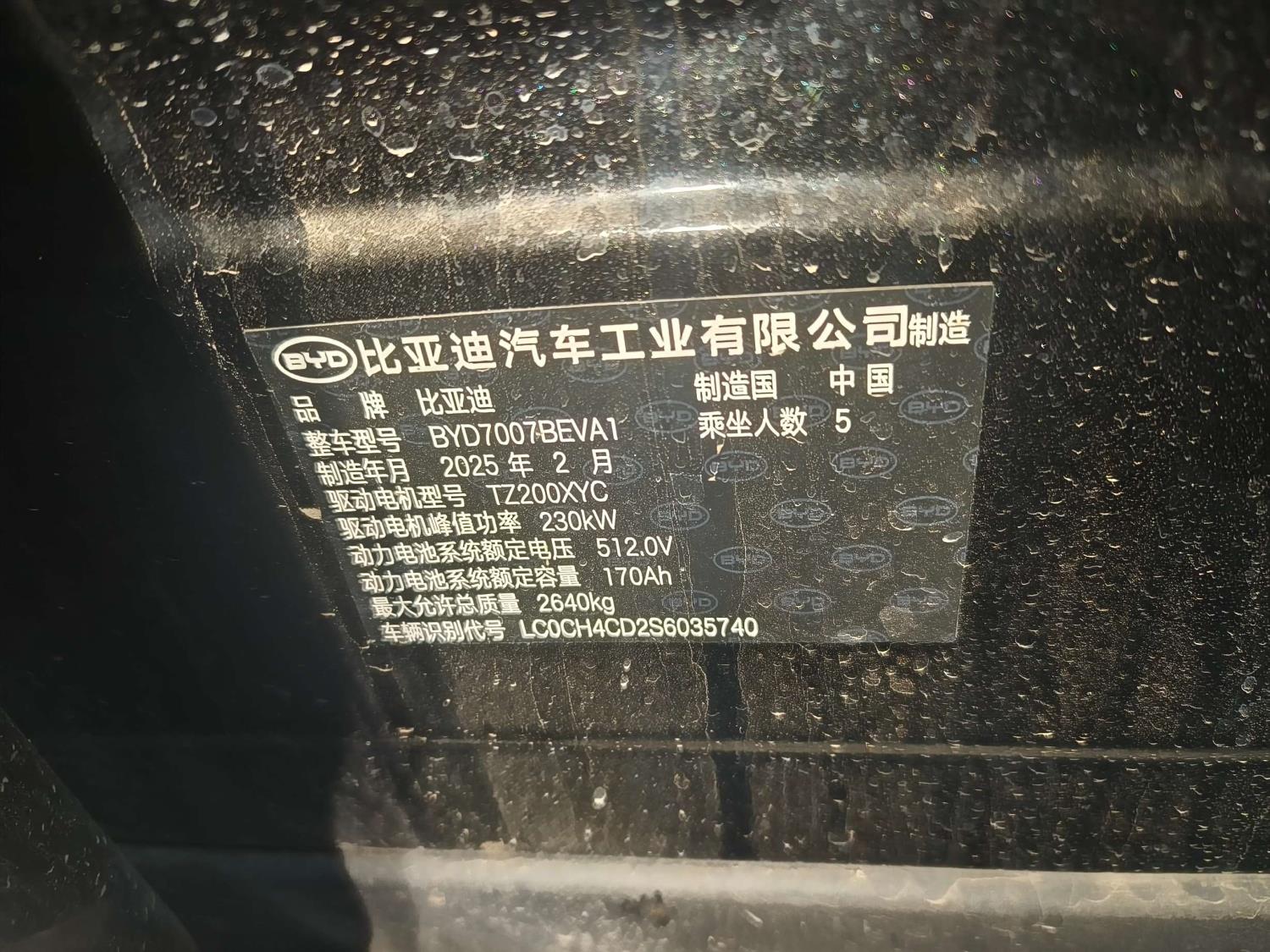 初次登记日期 2025-06-04 车辆名称 比亚迪 宋