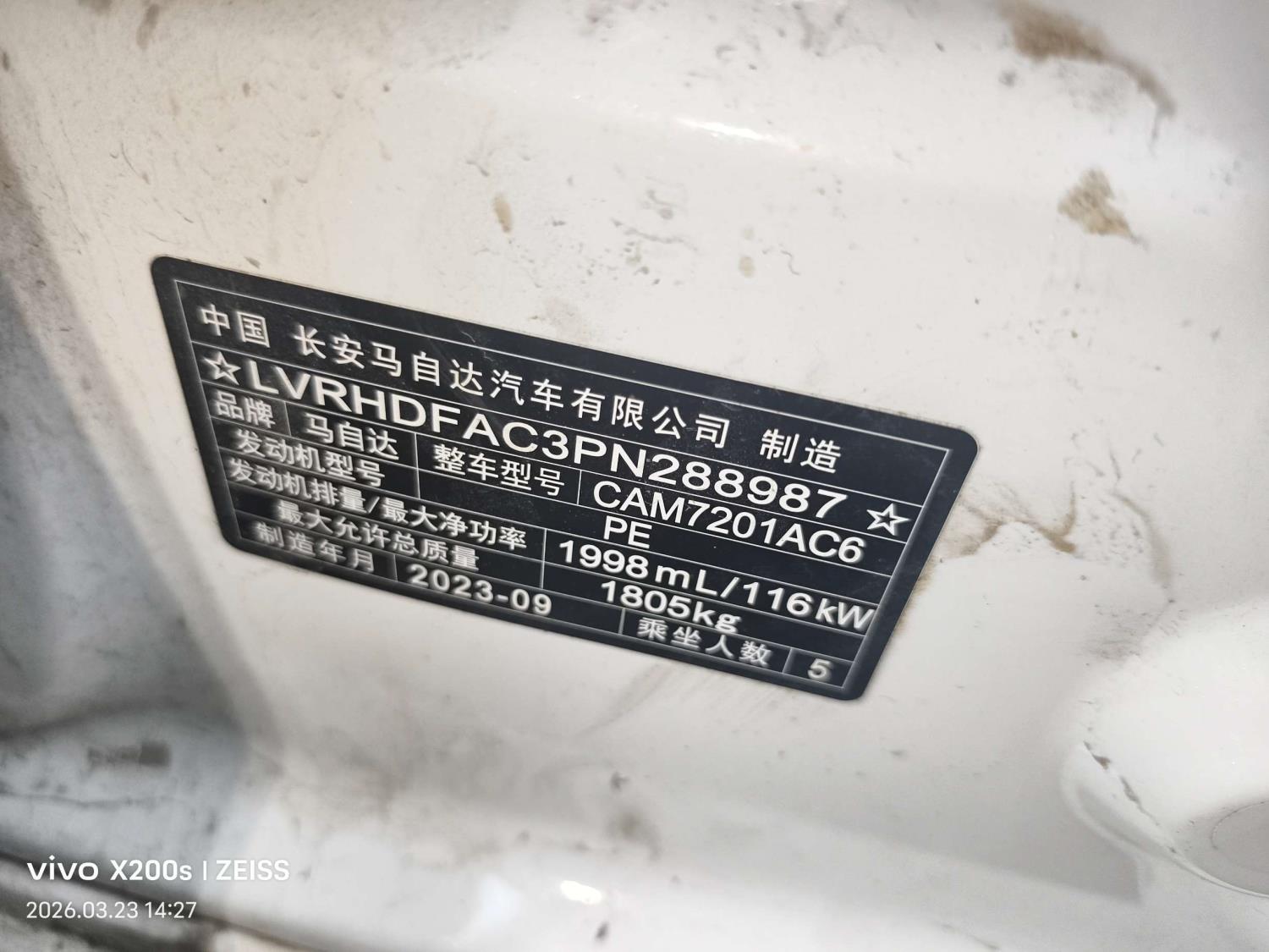 初次登记日期 2023-09-18 车辆名称 马自达3 昂克赛拉