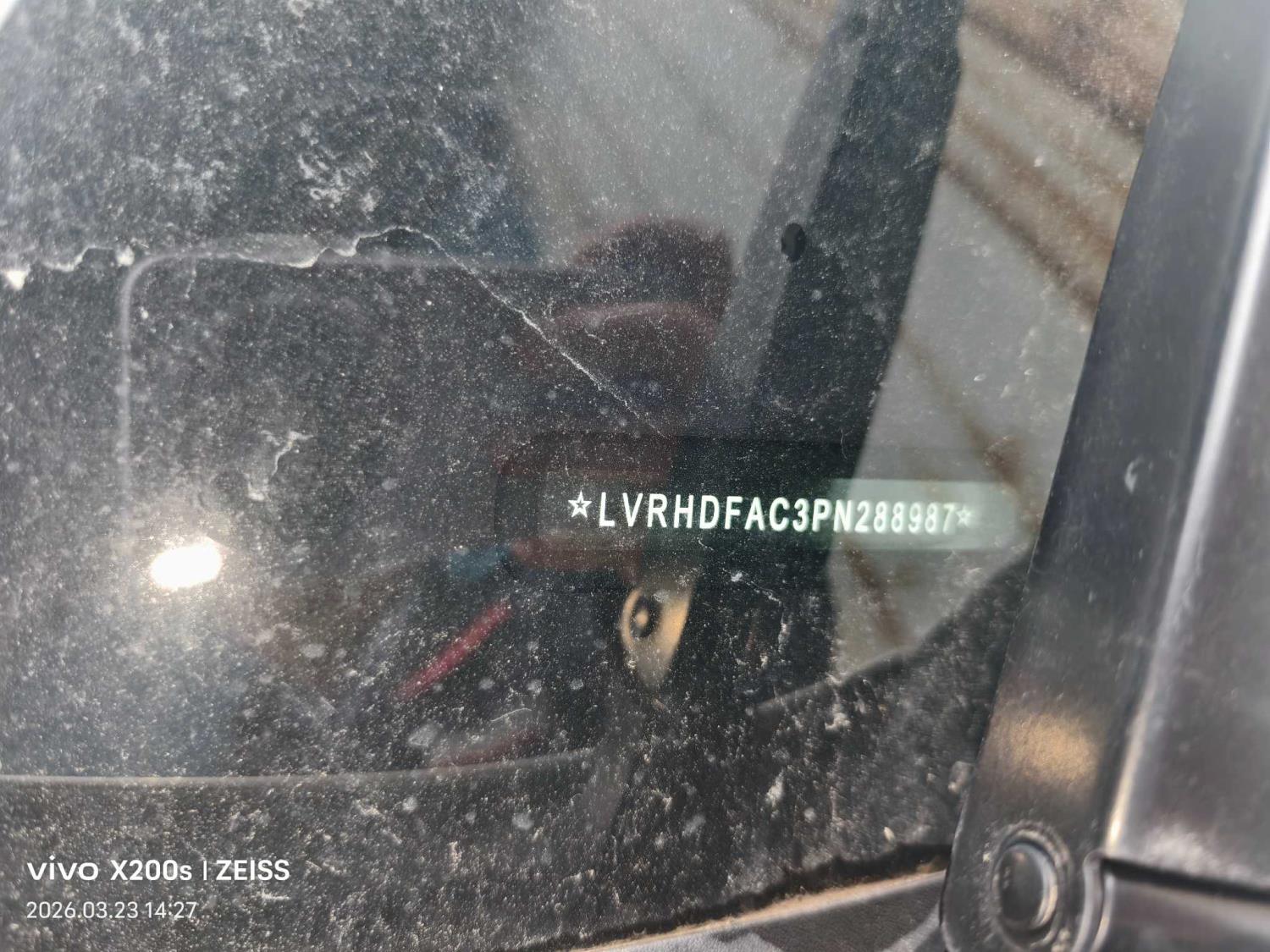 底盘号码 LVRHDFAC3PN288987 变速箱类型 手自一体