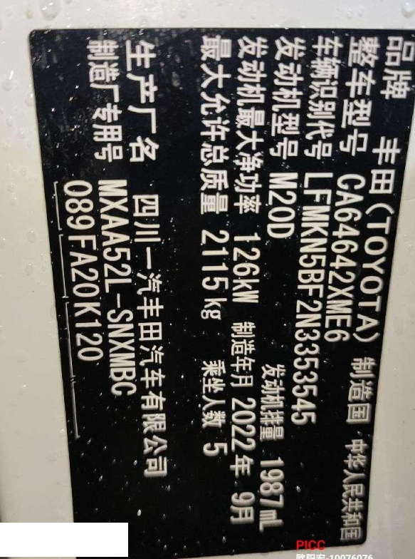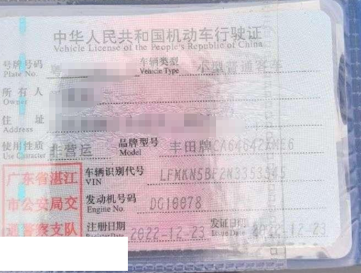 车牌号 粤****** 品牌 丰田
