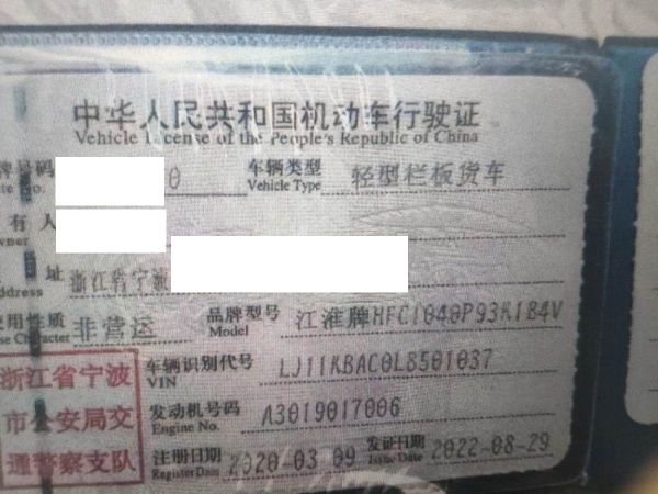 车牌号 浙****** 品牌 江淮