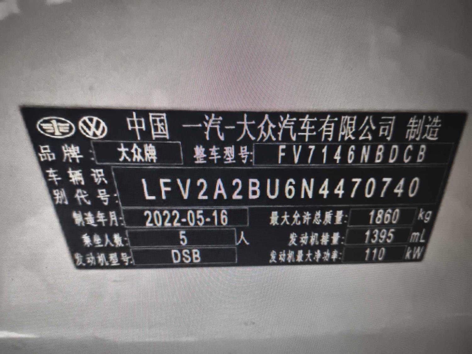 初次登记日期 2022-06-16 车辆名称 大众 速腾