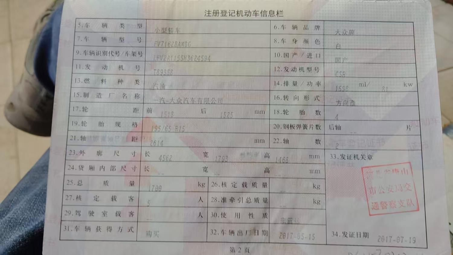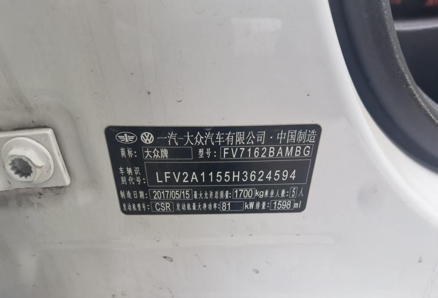 初次登记日期 2017-07-19 车辆名称 大众 宝来