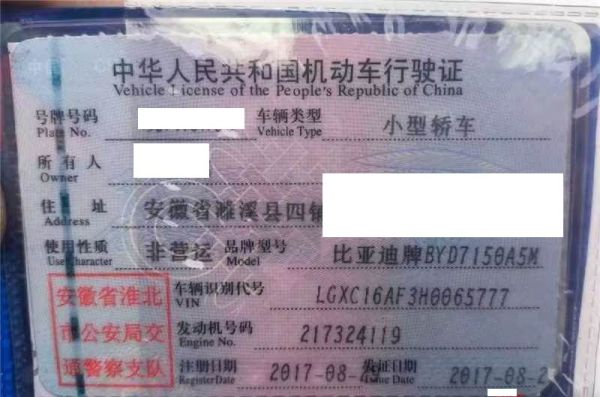 车辆归属地 安徽省淮北 车辆停放仓库 安徽省滁州市滁州市