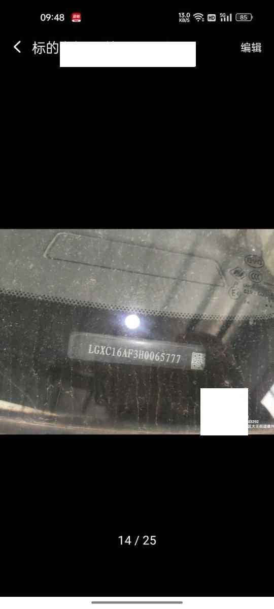 底盘号码 LGXC16AF3H0065777 变速箱类型 手动