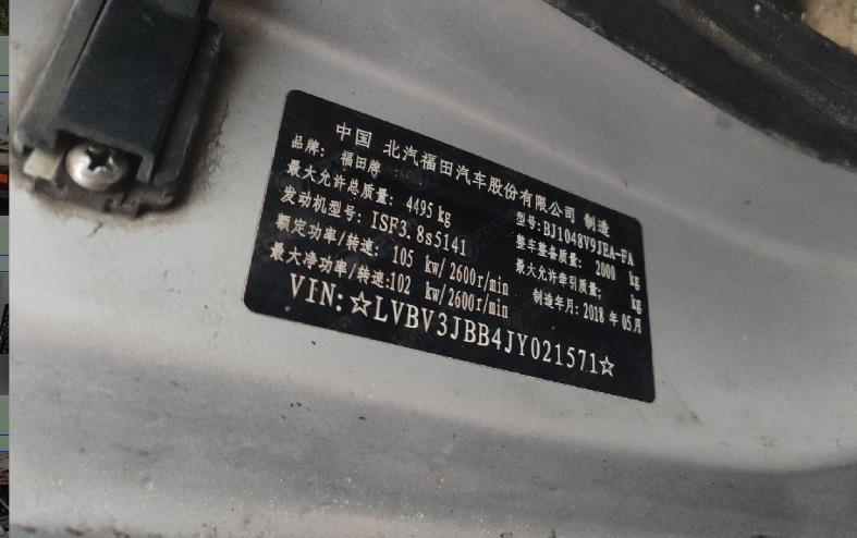 初次登记日期 2018-06-15 车辆名称 福田 奥铃