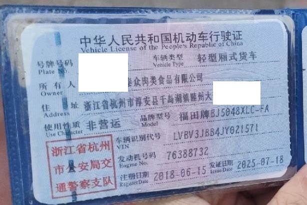 车牌号 浙****** 品牌 福田