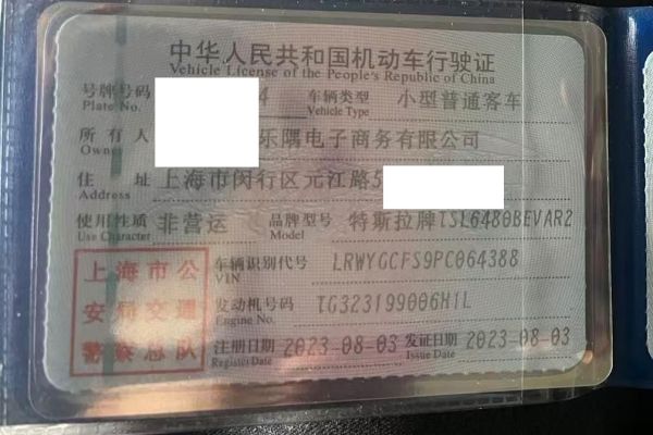 初次登记日期 2023-08-03 车辆名称 特斯拉 Model