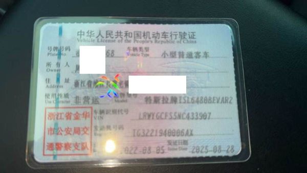 初次登记日期 2022-08-05 车辆名称 特斯拉 Model